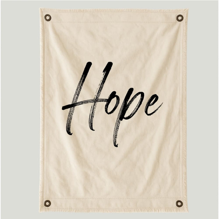 Lienzo simple y decorativo con la palabra Hope en negro sobre fondo natural. Su diseño moderno y positivo invita a llenar tus espacios de calma y optimismo.