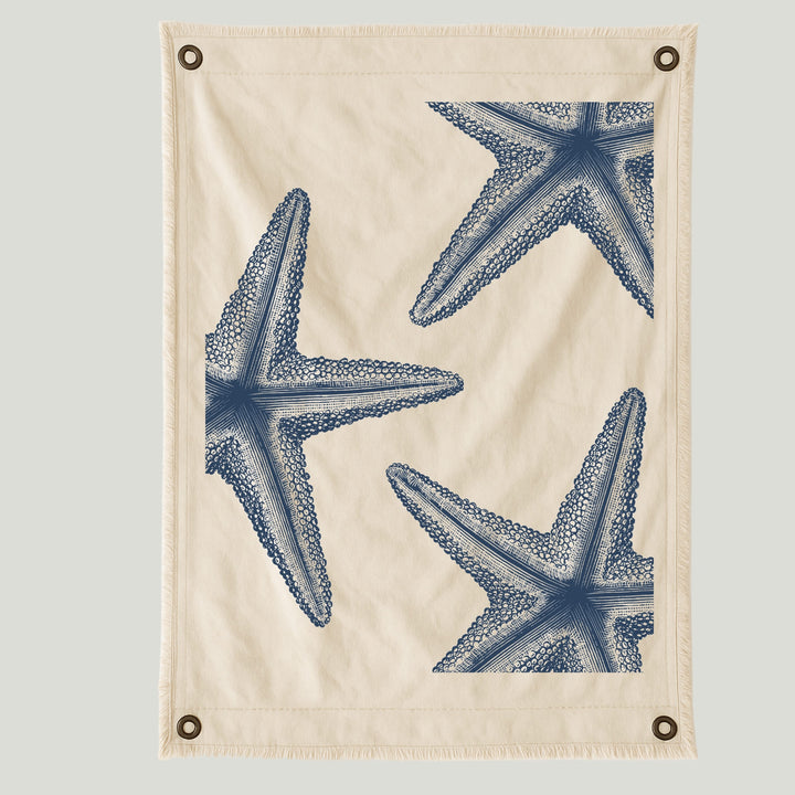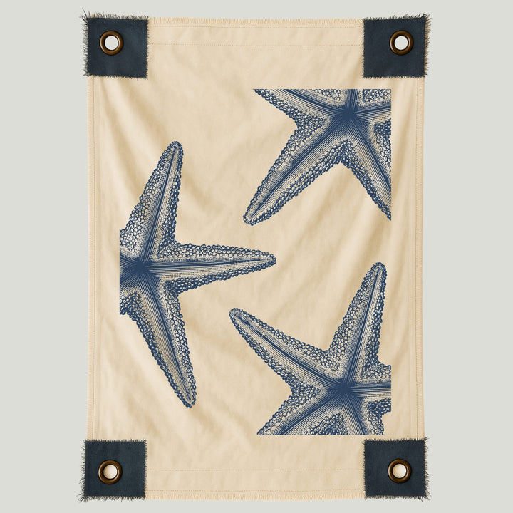 Lienzo con ilustración estrellas de mar en tonos azules, que evocan los días tranquilos junto al mar y la belleza natural de la costa. Su composición elegante y equilibrada aporta frescura y serenidad a cualquier espacio.