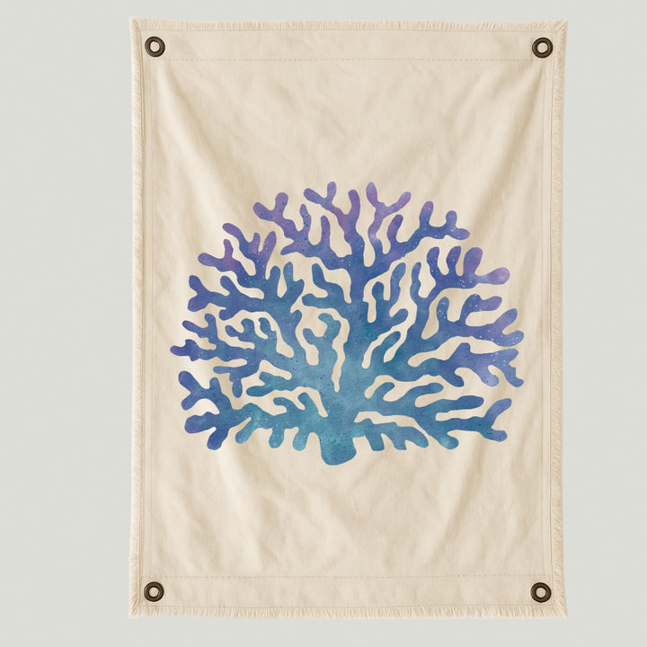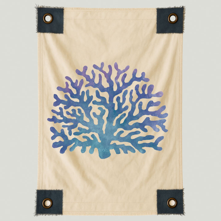 Lienzo con diseño de coral marino en tonos degradados de azul y violeta, que evocan la profundidad y tranquilidad del mar. Su estilo artístico aporta una sensación de frescura y movimiento, ideal para crear ambientes relajados y llenos de luz.