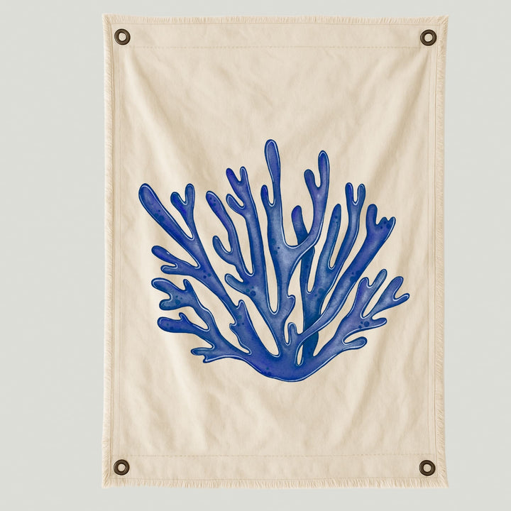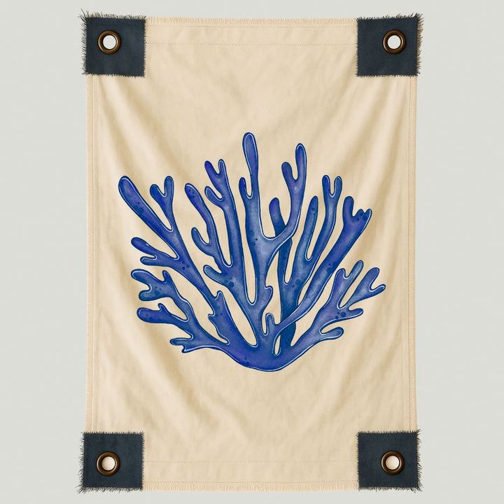 Lienzo con ilustración de coral en vibrantes tonos azules, inspirado en la riqueza y serenidad del mar. Su diseño orgánico y fluido transmite frescura y armonía, evocando la belleza natural de los paisajes marinos.