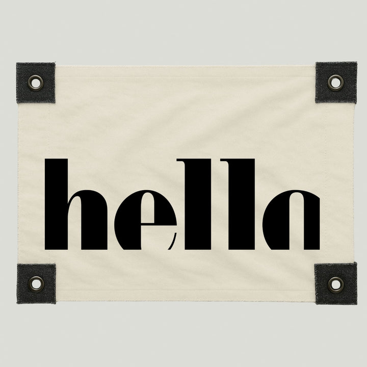Lienzo con la palabra hello en tipografía moderna y de gran formato, ideal para aportar un toque contemporáneo y acogedor a cualquier ambiente. Su diseño en negro intenso contrasta con la textura natural de la tela, creando una pieza llamativa y elegante.