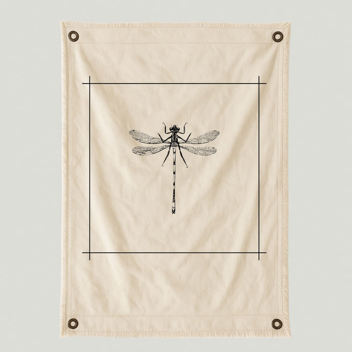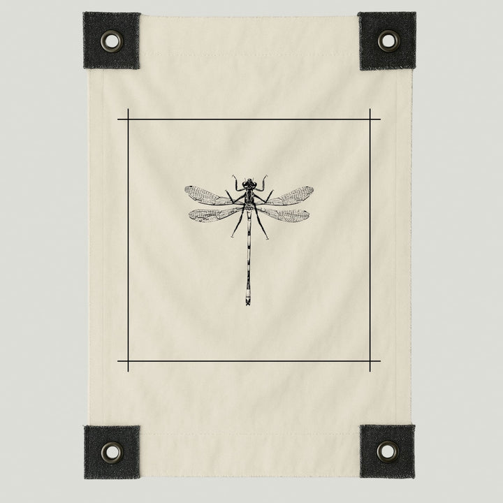 Lienzo con ibélula en tonos negros estampada, cuidadosamente detallada para resaltar la delicadeza y simetría de sus alas. Representa la libertad, la renovación y la conexión con la naturaleza.