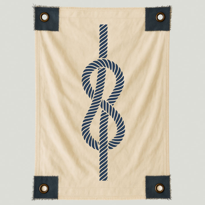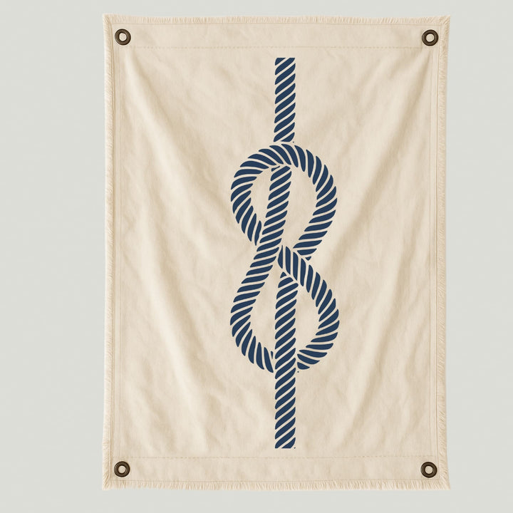 Lienzo con ilustración de un nudo marino en tonos azul profundo, inspirado en la estética náutica clásica. Representa la unión, la estabilidad y la conexión con el mar, convirtiéndose en una pieza versátil y elegante para quienes aman los espacios con aire costero.