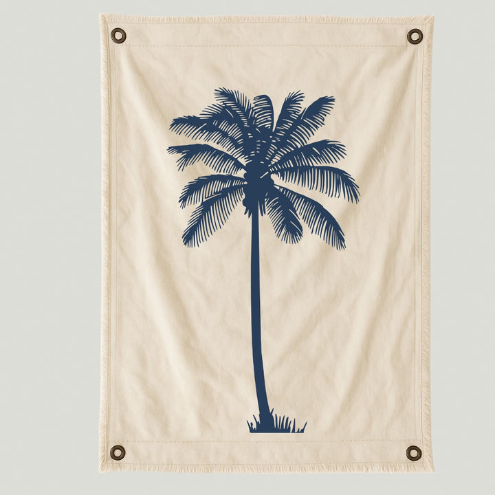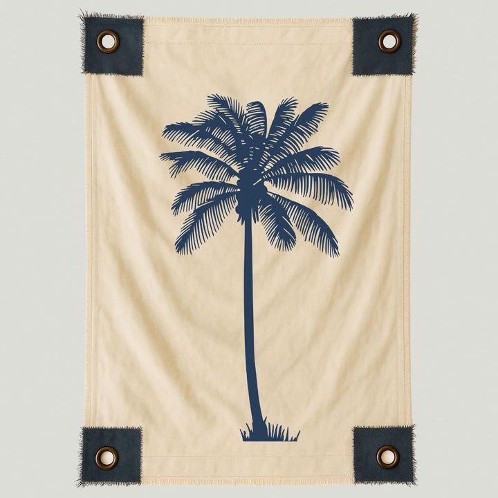 Lienzo con diseño de una palmera en tonos azul marino, símbolo del verano y la vida junto al mar. Su trazo limpio y contemporáneo aporta frescura y equilibrio, evocando la calma de los días soleados y el movimiento suave del viento costero.