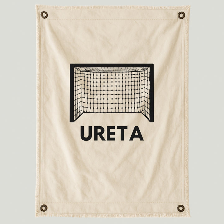 Lienzo con diseño de arco de fútbol y nombre personalizado, ideal para los fanáticos del deporte que quieren reflejar su pasión en la decoración. Su diseño minimalista en negro sobre fondo natural transmite fuerza y estilo, convirtiéndose en una pieza única y con carácter.