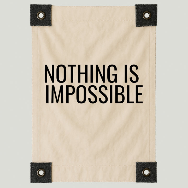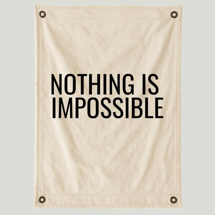 Lienzo con frase en inglés “Nothing is Impossible”, un mensaje potente y motivador que inspira confianza y determinación. Su diseño tipográfico en negro sobre fondo natural resalta por su estilo limpio y contemporáneo, ideal para quienes valoran la simplicidad con propósito.
